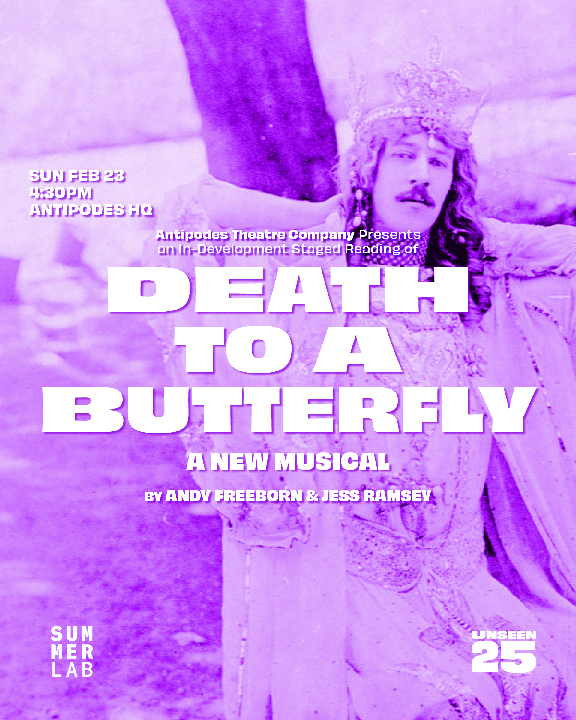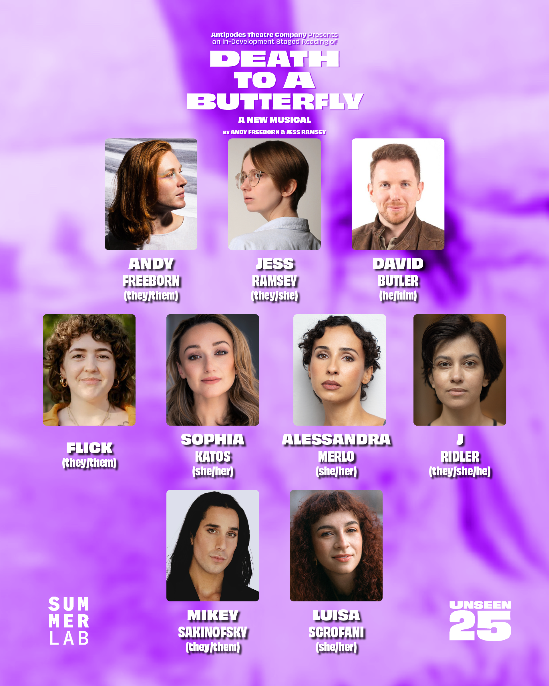 February 23rd - DEATH TO A BUTTERFLY: A NEW MUSICAL (Concert Reading) by Andy Freeborn & Jess Ramsey with David Butler, Flick, Sophia Katos, Alessandra Merlo, J Ridler, Mikey Sakinofsky and Luisa Scrofani