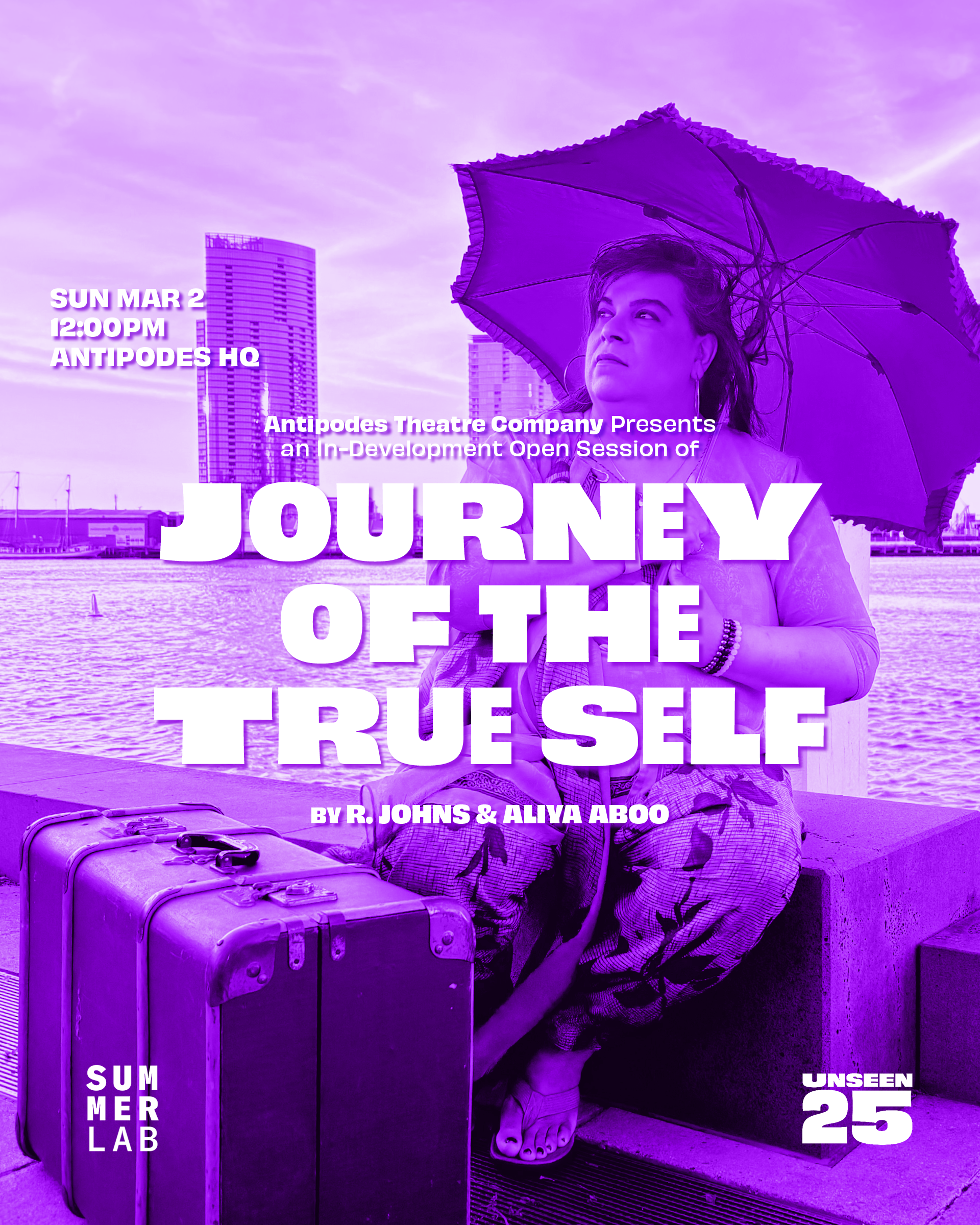 As part of the 2025 Festival of the Unseen, ATC’s inaugural Summer Lab provides ongoing development and support to previous Winter Lab projects (Antipodes’ flagship development program established in 2020). Each of the seven projects will culminate in either a one-night-only performance, a staged reading or in-development ‘sneak peek’ open sessions. The Summer Lab engaged 43 artists, returning and new.